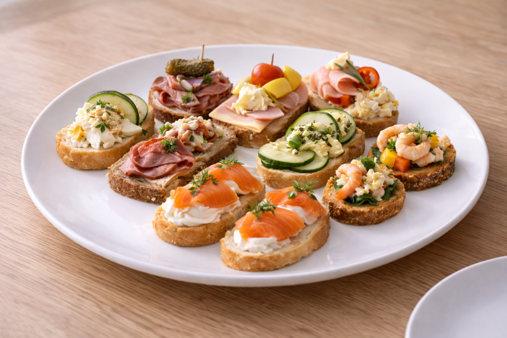 Fein belegte Häppchen, Canapés sowie kleine Wraps oder Röllchen